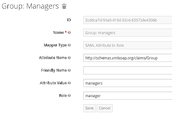 This setup would send an attribute named Group in the SAML assertion with value managers if the authenticated user is member of the DOMAIN\Managers group.