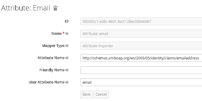 In the steps setting AD FS below, AD FS will be set up to send email and group information in SAML assertion. To transform these details from SAML document issued by AD FS to Keycloak user store, we’ll need to set up two corresponding mappers in the Mappers tab of Identity Provider: